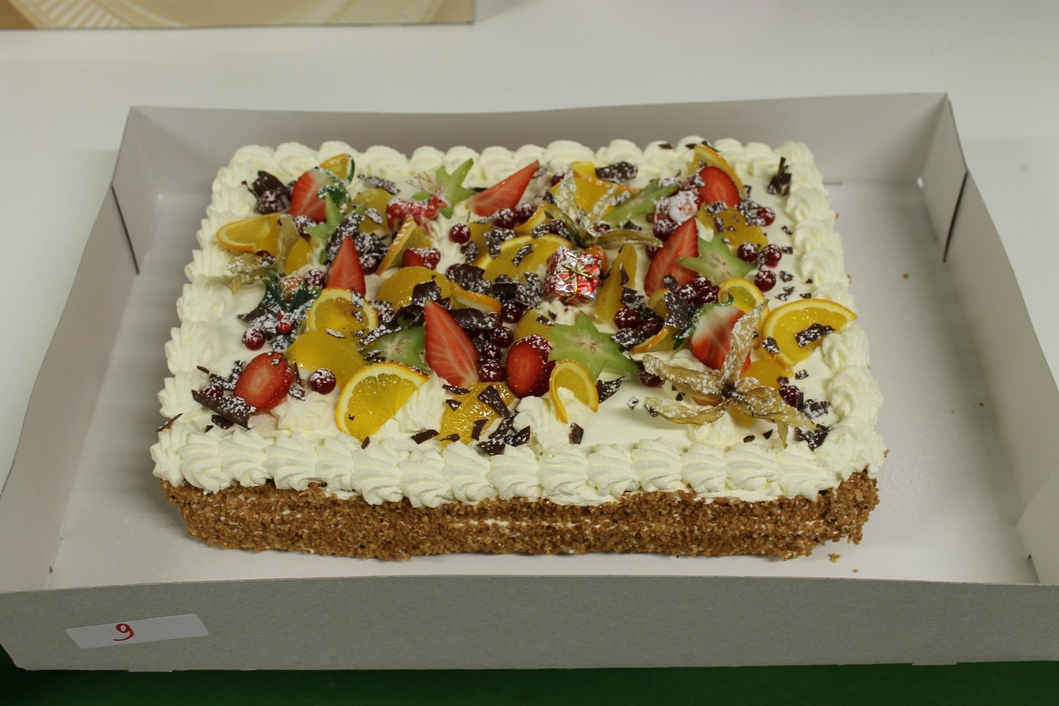 Zet de taart nog even in de koelkast alvorens te serveren.